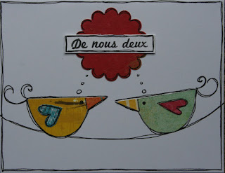 Mon mari peignait alors je me suis installée près de lui et j'ai fait du mix média (j'aurais dû être commandité par faber castell parce que tout le monde me demandait où j'avais pris ça!!) ....